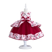 Latest Birthday Party Satin Children's Ball Gown Princess Bow Print Toddler Outfit Flower Girl Dress