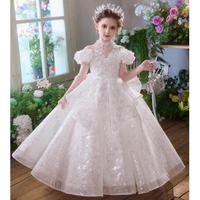 Luxury Sweet Princess Tulle Lace Party Flower Girl Wedding Baptism Birthday Performance Children's Evening Dress