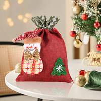 クリスマスパーティー好意5パック黄麻布ドローストリングギフトバッグかわいいサンタクロース雪だるまトナカイデザイン
