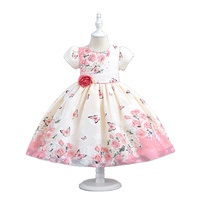 Girls Princess with Belt Puff Sleeves Formal Cake Short Children's Dress for 3-10 Years Old Party Wedding Birthday